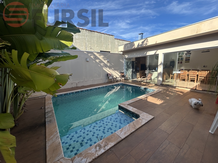 1 suíte c/ closet, 1 dorm, sala, copa, cozinha, WC, lavanderia, cozinha gourmet c/ churrasqueira, WC ext., despejo, piscina, garagem, portão eletr