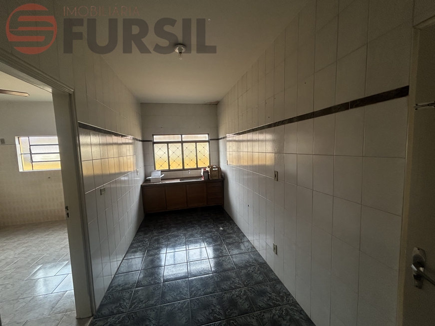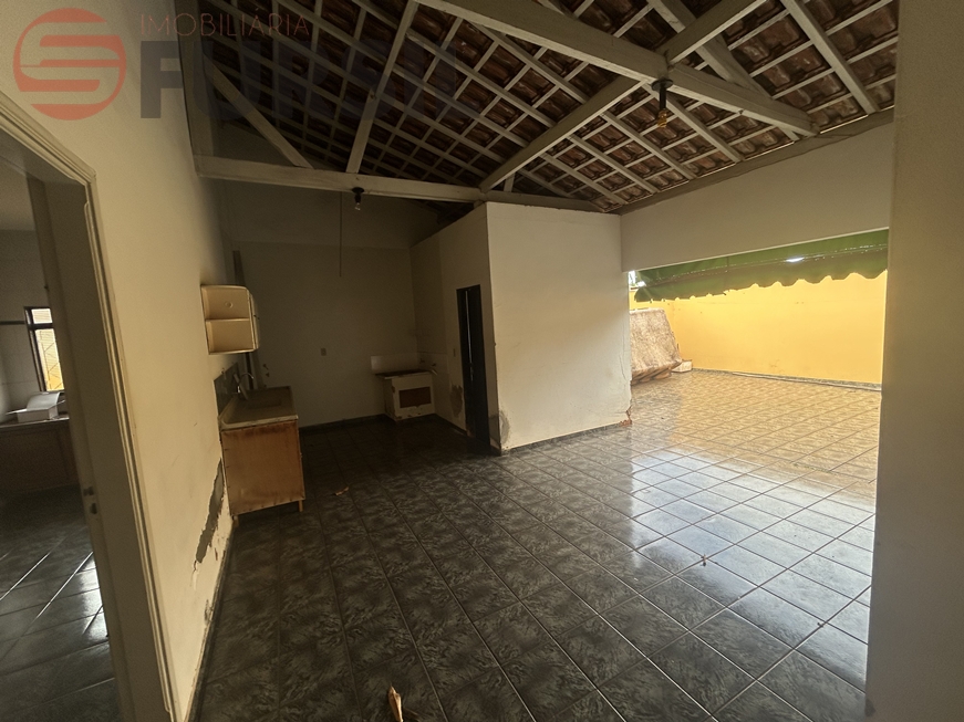 1 dorm, sala, copa, cozinha, despença, despejo, WC ext., lavanderia, churrasqueira, garagem; piso cerâmica; laje